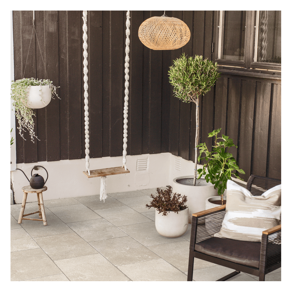 A porcelain tile designed to emulate the look of natural stone. Measuring 40.8 cm x 61.4 cm with a substantial thickness of 2 cm, this tile is engineered for durability in outdoor settings. Its beige hue and natural finish provide a contemporary aesthetic, while the stone-effect design adds a touch of natural elegance. Ideal for patios, terraces, and garden pathways, the Arles tile offers both style and resilience for exterior flooring projects.