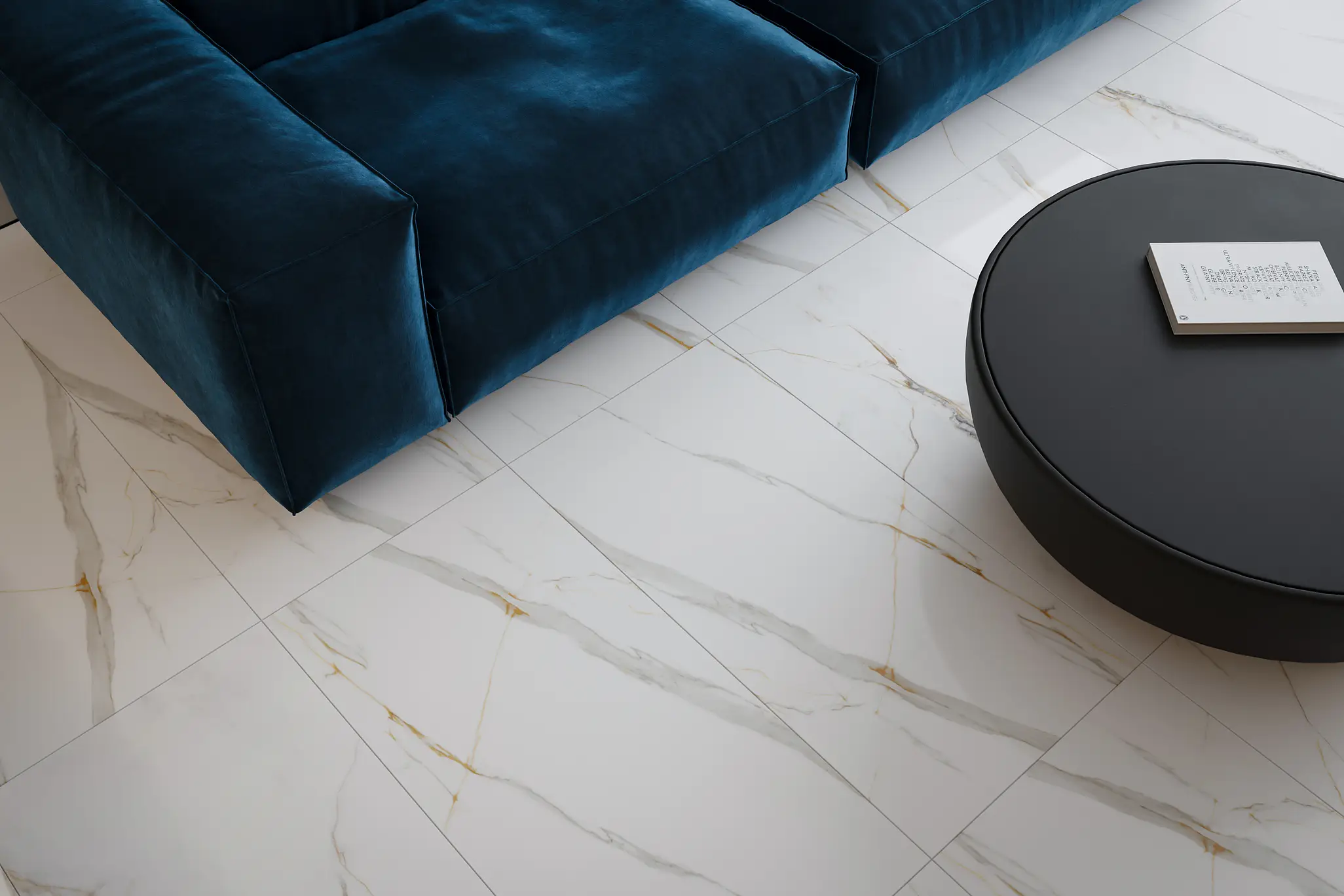 A refined porcelain tile that captures the timeless elegance of classic marble. Its design features a luminous white background enriched with delicate, shimmering golden veins that evoke the luxurious character of authentic Calacatta Gold. Meticulously engineered for superior performance, this tile offers excellent durability, resistance to stains and scratches, and low water absorption—qualities that make it ideal for both wall and floor applications. Whether used in upscale residential interiors, sophisticated commercial settings, or high-end hospitality projects, Calacatta Gold provides a harmonious blend of aesthetics and functionality, transforming any space into a statement of elegance and enduring style.
