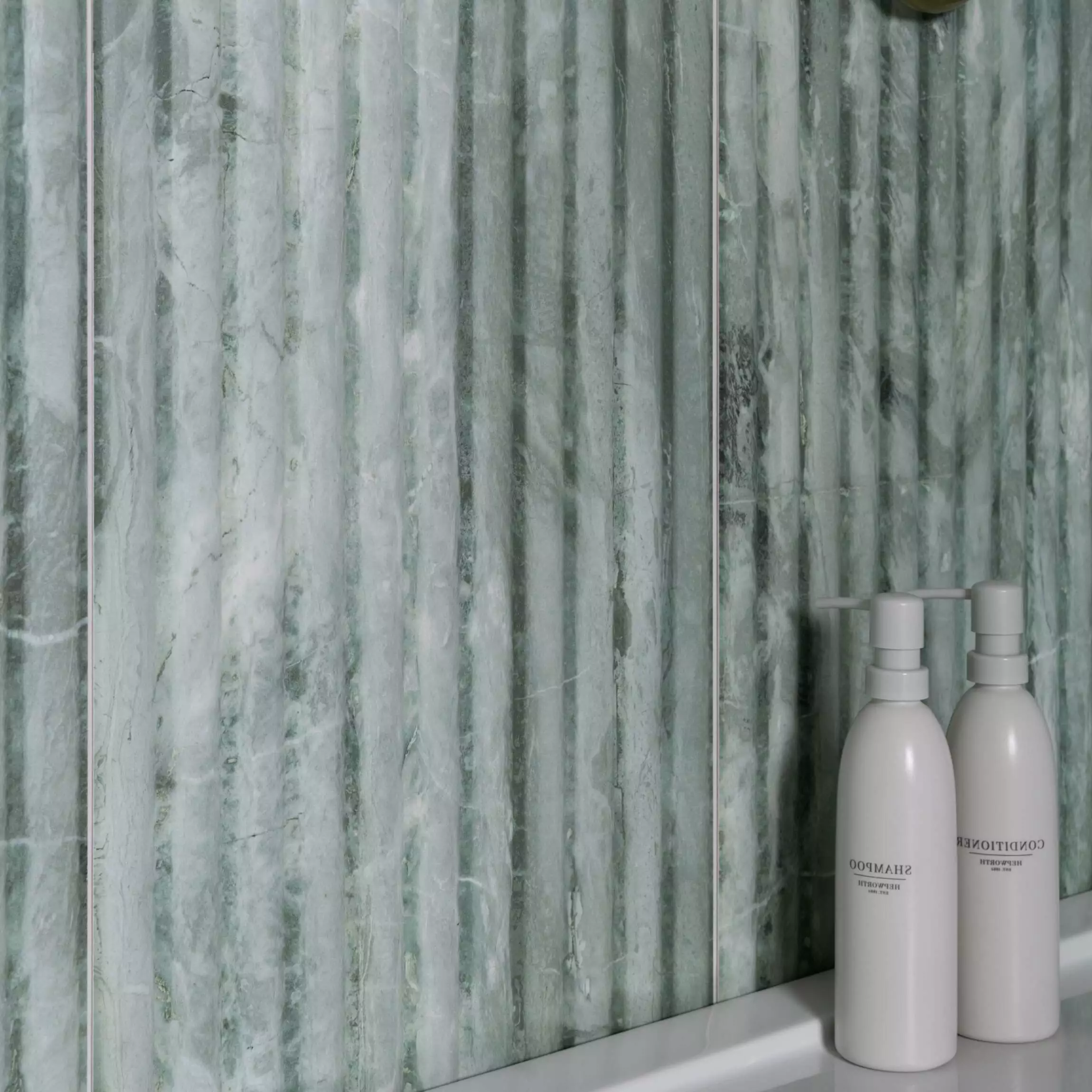 Ideal for internal wall applications, the fluted linear design adds texture and visual interest, making it an exceptional choice for living rooms, bathrooms, kitchens, reception areas and feature backdrops. Whether used as a full-height statement wall or a decorative highlight, Fluted Green delivers a timeless, contemporary aesthetic.