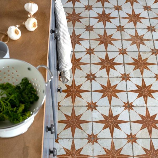 These tiles are inspired by traditional Spanish encaustic designs and have a vintage, worn look that takes you back to simpler times. They remind you of a cozy tapas bar hidden in a quiet alley in Sevilla—a place you discover and never want to leave.
