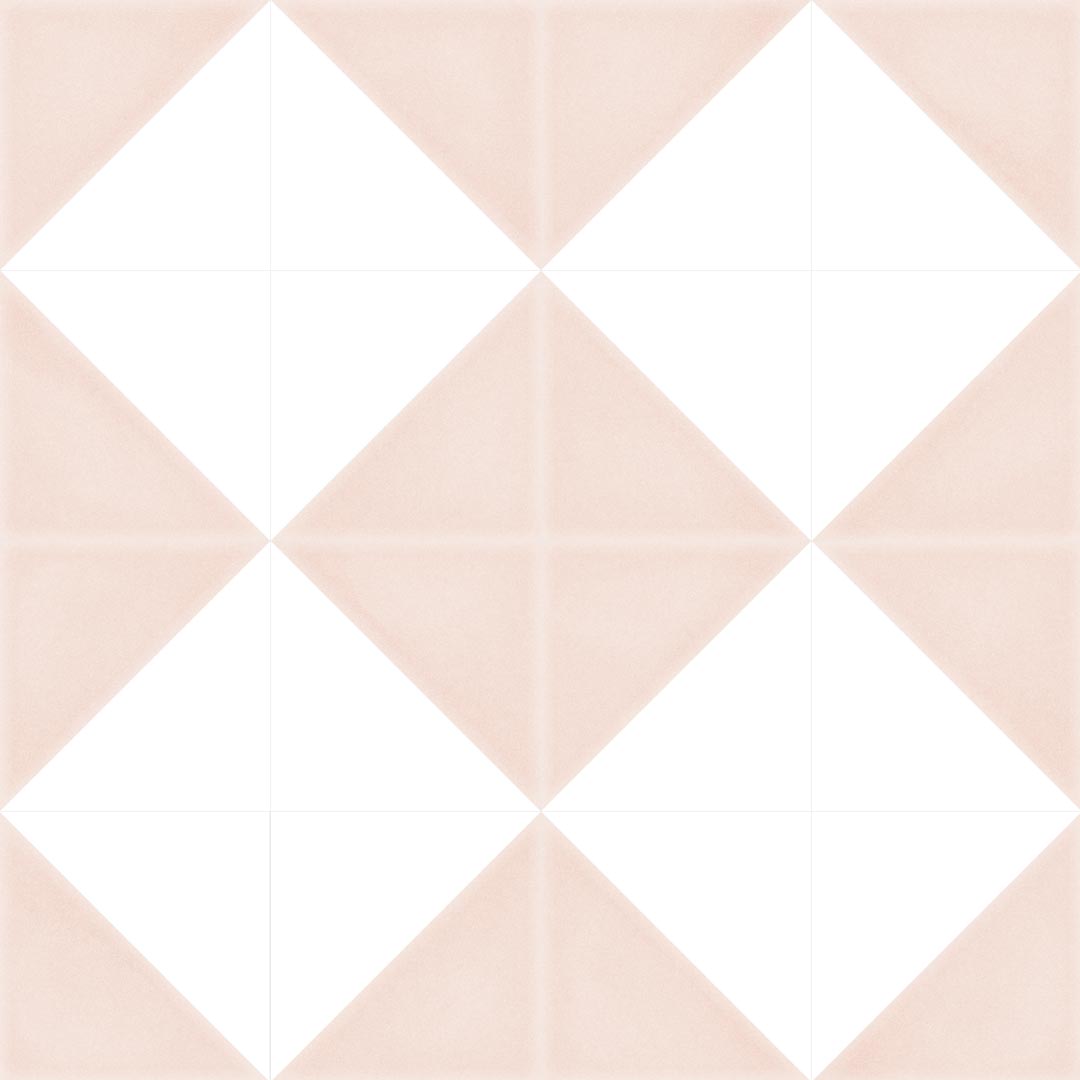 A simple tile split into two triangles, one white and the other in a complementary colour. Unleash your creativity by crafting various geometric designs, from triangles and squares to playful wavy lines. Versatile in use, Vivid serves as both a wall and floor tile, allowing you to bring a touch of vibrant design to any space.